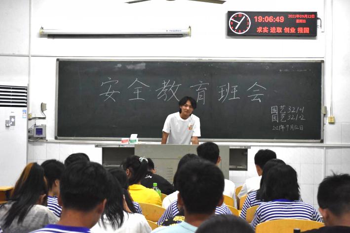 据了解,各小班从三方面为大家科普安全知识。分别是人身安全,财产安全,心理健康。加强新生防电、防火安全教育。不允许学生在宿舍内私拉乱接电线、违规使用大功率电器和使用蜡烛、酒精炉等易燃易爆物品并指导学生正确使用日常生活中的电器件物品,养成好习惯。同学们现场反映良好,与小班们互动多多。除了安全知识,小班们还为21级新生讲解学生手册,包括学习本校规章制度,违规违纪处理办法等。其中园林32101班和园林32102班的班会氛围最为热烈,在安全教育后,还进行了每位同学的自我介绍,现场问答活动,整个教室里充满了欢声笑语。