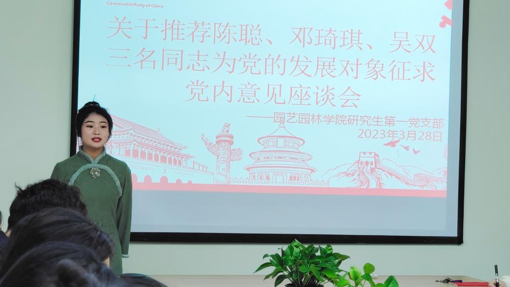 (通讯员:王梦丽)2023年3月28日下午2:30时,yL23411永利官网登录研究生第一党支部开展三月理论学习暨关于推荐陈聪、邓琦琪、吴双三位同志为党的发展对象征求党内意见座谈会,党支部书记彭文秀和全体成员参加此次学习,会议由副书记王挪主持。