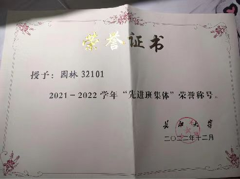 园林32101在2021-2022学年学生工作评优中,被评为先进班集体 |