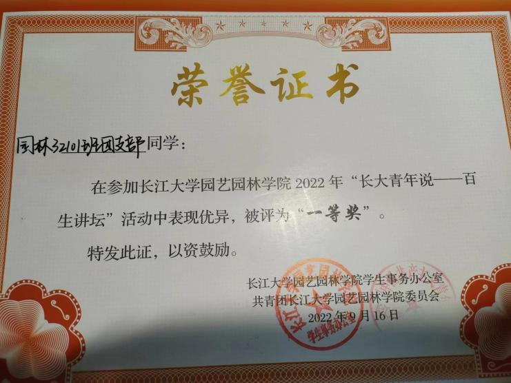 园林32101在2021-2022学年中获百生讲坛院级活力团支部 |