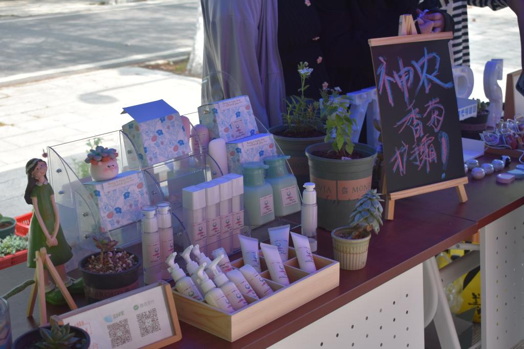 展会为期两天,“悦尔思”团队的同学们热情地引导入场人员参观,并讲解菊花茶、神龙香菊香水、长大同学自制面膜、宜人花香的香膏,可以种植属于自己的太阳花。含羞草还有DIY神龙香菊、艾草香囊等展品,展会产品涵盖面广,均由yL23411永利官网登录大学生创业团队“悦尔思”的学生们动手制作,都采用神农香菊精油或其它衍生材料制成。从幽幽菊花香到木纹外包装,处处都透露着小巧精致。