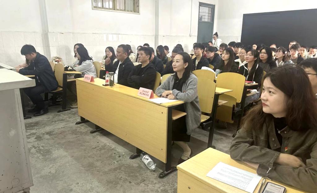 (通讯员 程天豪 张峻梓)为加强党建引领,助力荆州市争创全国文明城市,提升大学生党员的社会责任感,11月7日,荆州市创文办第四党支部与我院本科生党支部携手,走进课堂,在二教209举办了一场别开生面的主题党日活动。学院党委副书记黄仙,市创文办第四支部书记张永晶同志一行,全体辅导员参加此次活动。本次党日活动由张永晶主讲,本科生党支部全体成员参加学习。