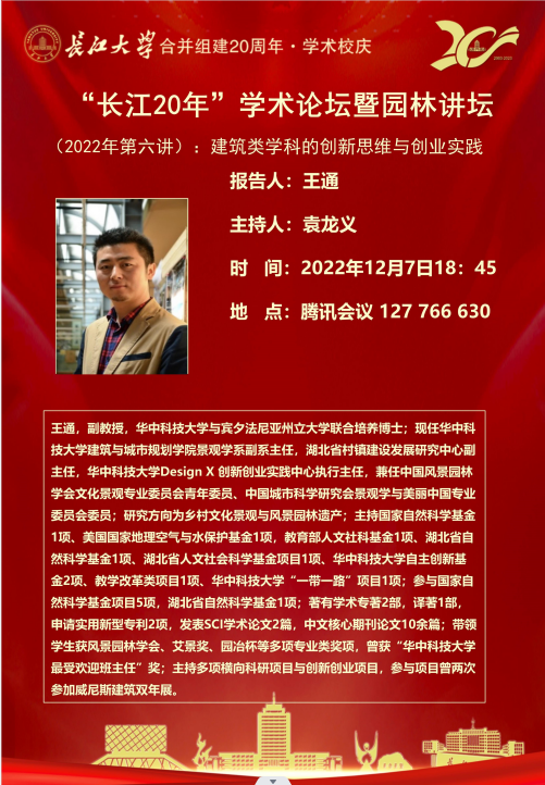 “长大20年”学术论坛暨学院讲坛 (2022年第六讲):建筑类学科的创新思维与创业实践