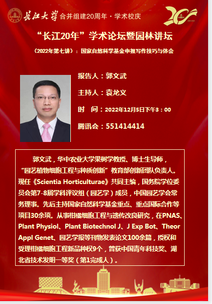 “长大20年”学术论坛暨学院讲坛 (2022年第七讲):国家自然科学基金申报写作技巧与体会