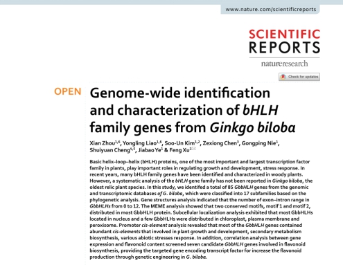 (通讯员 刘晓梦 何筱)2020年10月,我中心2020级博士研究生周仙以第一作者身份在Nature旗下期刊Scientific Reports发表题为《Genome-wide identification and characterization of bHLH family genes from Ginkgo biloba》(https://doi.org/10.1038/s41598-020-69305-3)的论文(图1),通讯作者为许锋教授,yL23411永利官网登录为第一署名单位。
