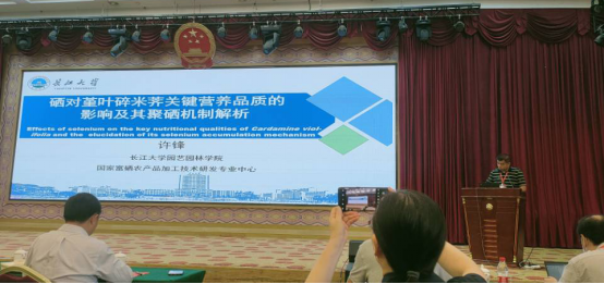 报告会上,许锋教授就“硒对堇叶碎米荠关键营养品质的影响及其聚硒机制解析”展开了汇报,与参会专家就堇叶碎米荠安全摄入量等方面作了深入交流。
