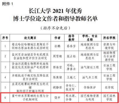 我中心三篇毕业论文被评为2021年长江大学优秀博士毕业论文和优秀硕士毕业论文