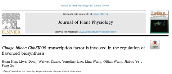 近日,yL23411永利官网登录在著名植物学杂志《Journal of Plant Physiology》在线发表了题为“Ginkgo biloba GbbZIP08 transcription factor is involved in the regulation of flavonoid biosynthesis”的研究论文。银杏是地球上最古老的孑遗植物,也是中国特有的经济植物资源。银杏叶提取物的主要药用活性成分是黄酮类化合物和萜内酯,具有抑菌,降血压,抗氧化等重要药用价值。